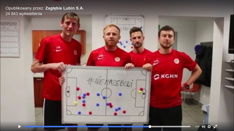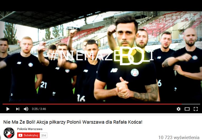 Z kolei piłkarze Zagłębia Lubin promują akcję „Nie ma, że boli”, do której zostali nominowani przez warszawską Polonię. Celem akcji jest pomoc w znalezieniu specjalisty dla 29-letniego reprezentanta tego zespołu, Rafała Kośca, który w marcu tego roku spadł ze schodów i złamał kręgosłup. Po operacji jego stan się pogorszył. Piłkarz jest sparaliżowany, jego organy i mięśnie nie funkcjonują prawidłowo. W liście otwartym Rafał Kosiec pisze, że konsultował się z wieloma lekarzami, jednak żaden z nich nie potrafił mu pomóc. Każdego dnia sportowiec odczuwa ogromny ból. Stąd motyw inicjatywy.