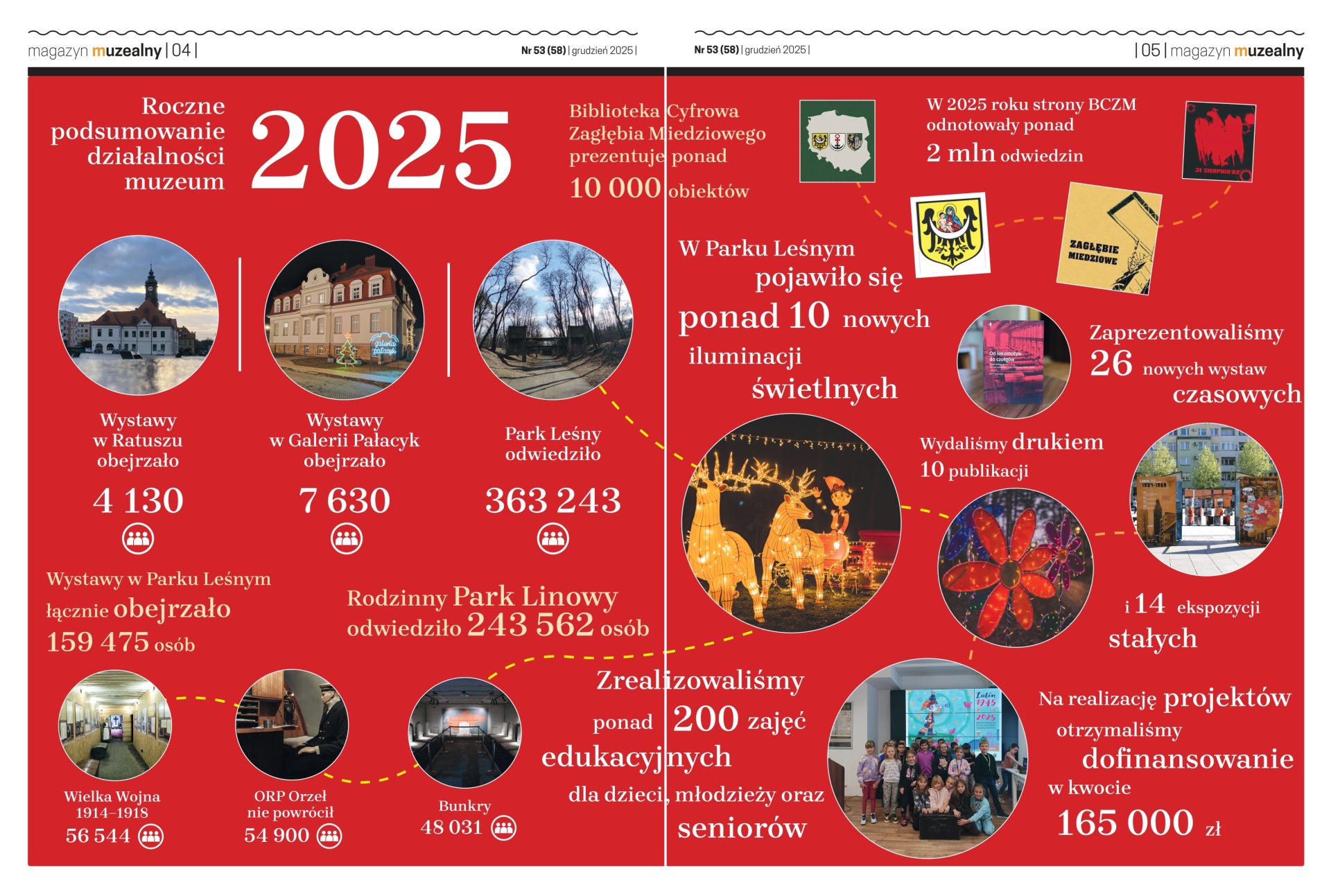 Muzeum Historyczne przygotowało liczbowe podsumowanie roku w graficznym skrócie. Ukazało się ono w ostatnim wydaniu „Magazynu Muzealnego”, który został opublikowany jako dodatek do „Wiadomości Lubińskich”.