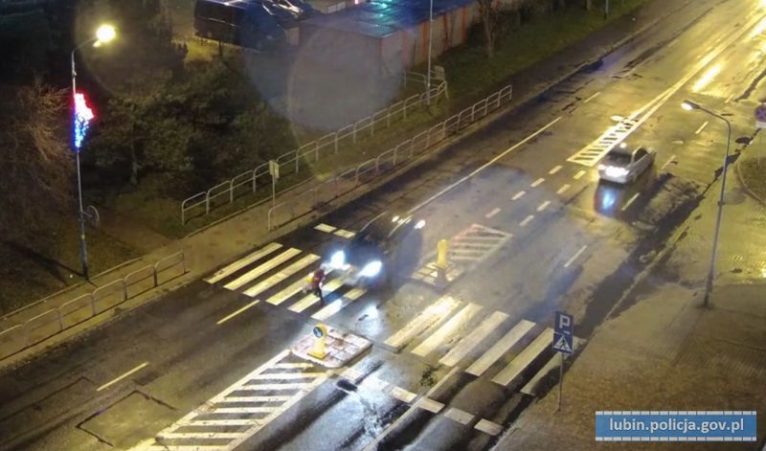 Choć było dopiero po godzinie 16, było już ciemno. 47-letnia lubinianka, jadąc ulicą Wyszyńskiego od strony Leśnej w kierunku Piłsudskiego, potrąciła przechodzącą przez przejście dla pieszych 83-latkę. Zdarzenie wyglądało dramatycznie. Kobieta uderzona przez auto została przerzucona kilka metrów za pasy, po których szła, torby wysypały się na jezdnię. Zdarzenie nagrały kamery miejskiego monitoringu. Lubińska policja publikuje nagranie ku przestrodze.