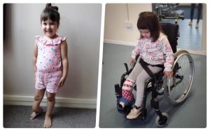 Każde złamanie to krok w stronę amputacji. Kość coraz szybciej się wykręca, powodując coraz mniejszą możliwość poruszania się. Już dzisiaj córeczka zależna jest od wózka inwalidzkiego. Tak powyginana i połamana kość powoduje ogromny ból, który nawet nam, dorosłym, trudno sobie wyobrazić… Wiktoria budzi się w nocy, płacze z bólu. Nie ma środków przeciwbólowych dla tak małych dzieci. Lekarze ciągle podają paracetamol. To nie pomaga…