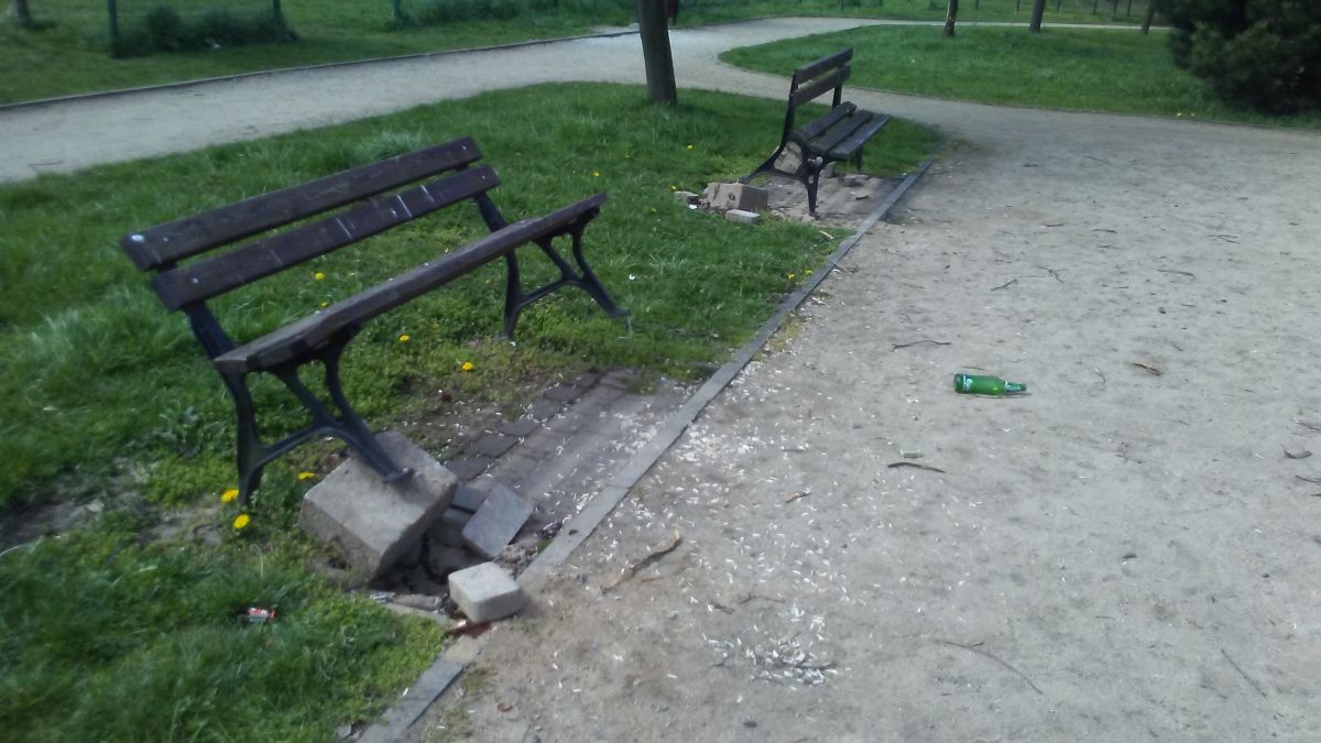 Korzystający w sobotę i niedzielę z wiosennych promieni słońca spacerowicze przecierali oczy ze zdumienia. Do Zimnicy, czyli niewielkiej rzeki przepływającej przez skwer przy ul. Konstytucji 3 Maja, ktoś wrzucił dwie ławki. To jeszcze nie wszystko. Kilka metrów dalej było widać, że wandale na tym nie poprzestali. Z ziemi wyrwanych było kilka kolejnych ławeczek. Być może pewnym wyjaśnieniem tej sytuacji jest leżąca w pobliżu butelka po piwie…