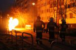 Walka z żywiołem rozpoczęła się przed godz. 17. Strażaków o pożarze powiadomili mieszkańcy. Od tamtej pory na miejscu pracowało kilkudziesięciu funkcjonariuszy straży pożarnej i policji, którzy skrupulatnie zabezpieczali teren akcji. Obstawione trzema wozami strażackimi i kilkunastoma radiowozami podwórko zostało dodatkowo oklejone taśmą. Policjanci zablokowali ponadto dojazd do ul. Sztukowskiego od skrzyżowania z ul. Krupińskiego i Budowniczych LGOM. Początkowo istniało bowiem ryzyko, że płonący gaz może eksplodować.