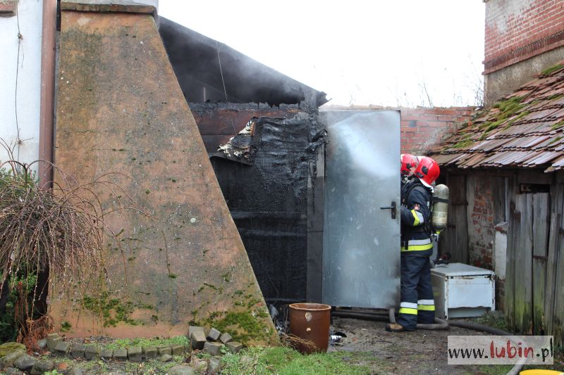 Pożarem było objęte pomieszczenie, tzw przybudówka, w której znajdował się piec z zasobnikiem.