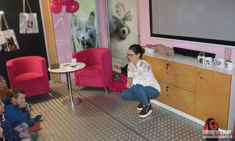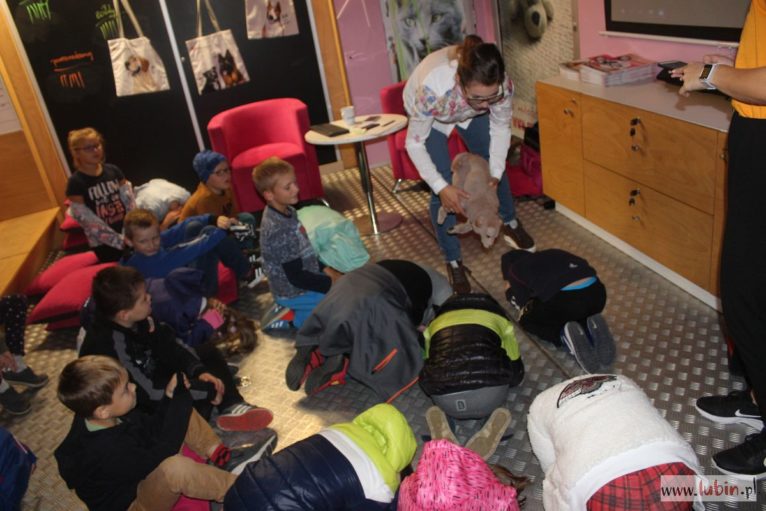 Podczas prelekcji dzieci ze szkół podstawowych poznają zachowania zwierząt. Bezpieczna pozycja jest bardzo ważna podczas ataku psa.