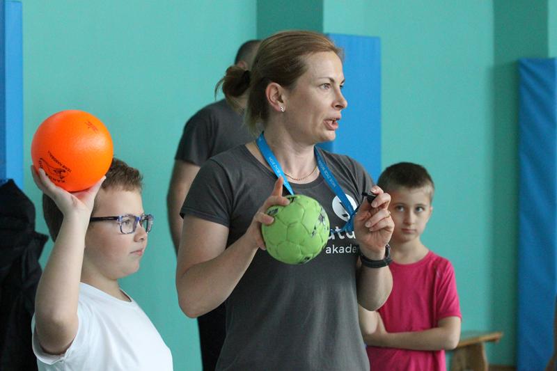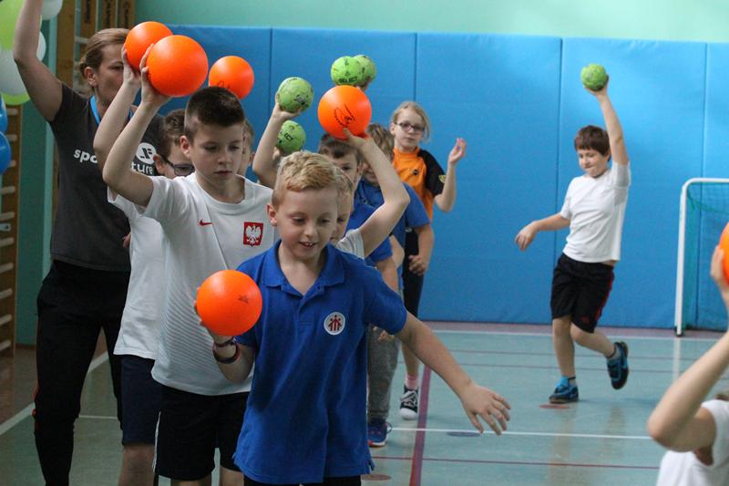 Uczniowie znali wiele elementów, które wykonywali podczas zajęć z Kają Załęczną, ale były też nowe, które zainteresowały młodych ludzi, jak podania piłki, typowe podczas treningu szczypiorniaka czy biegi z piłką, którą na końcu umieszczało się w plastikowej obręczy w określonej wcześniej liczbie.
