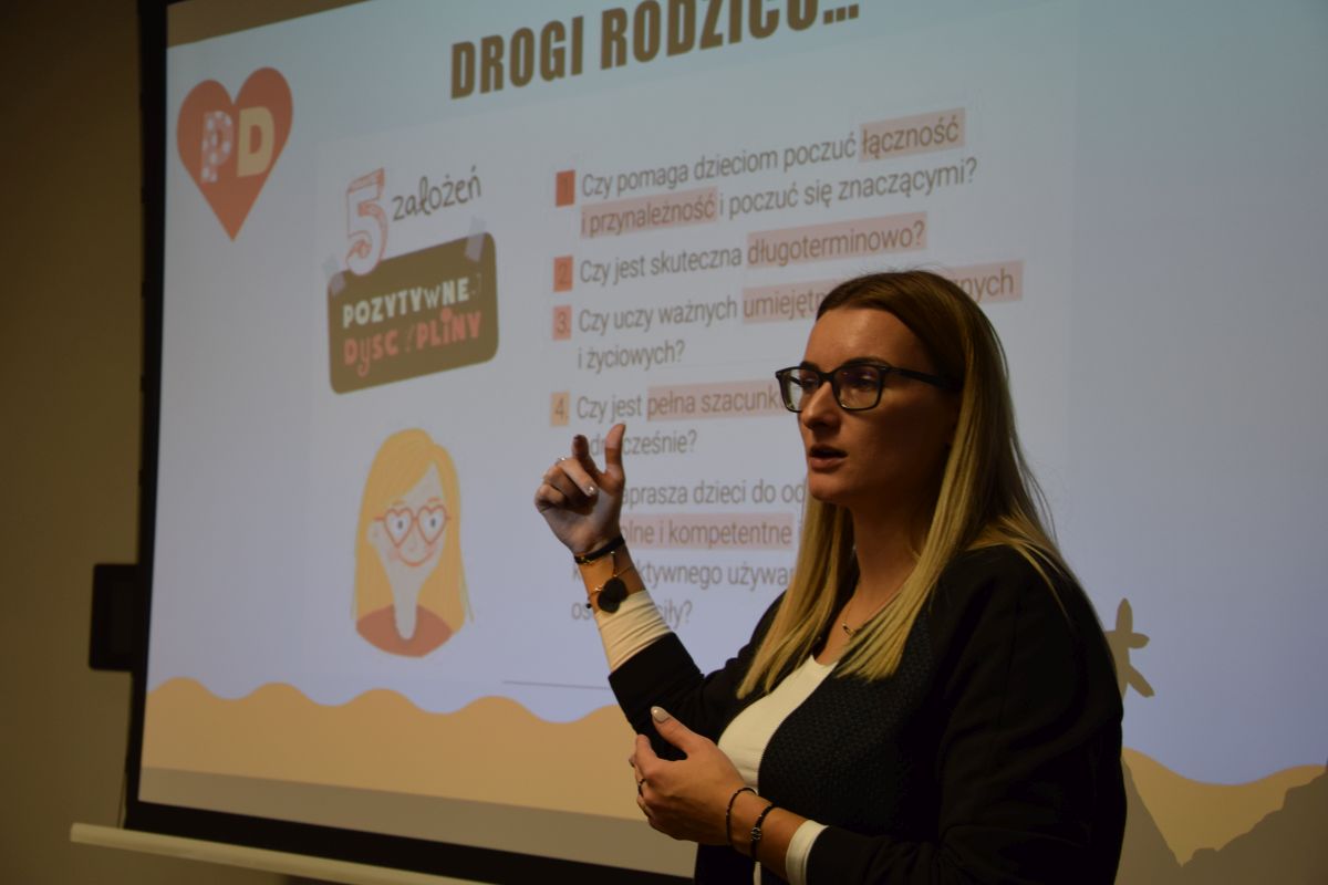 W sali konferencyjnej w Regionalnym Centrum Sportowym odbyły się warsztaty prowadzone przez Paulinę Kowalczyk-Burek, która jest edukatorem Pozytywnej Dyscypliny, psychologiem-seksuologiem i psychoterapeutą w trakcie certyfikacji. Podczas warsztatów uczestnicy mogli dowiedzieć się, czym jest pozytywna dyscyplina i jakie ma zastosowanie w relacjach rodzic-dziecko. Ideą tego spotkania było zapoznanie rodziców z tym, co pozytywna dyscyplina wnosi do naszej codzienności.