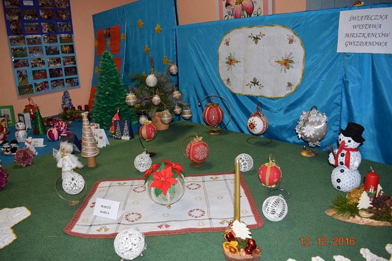 W świetlicy w Gwizdanowie można podziwiać prace o tematyce bożonarodzeniowej. Znajdziemy tam własnoręcznie wykonane kartki z życzeniami, dekoracje stołu świątecznego, ozdoby choinkowe czy same choinki z różnych materiałów. Ekspozycja będzie dostępna do końca stycznia.