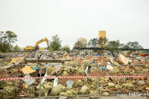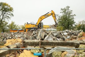 Dawna Fabryka Domów, od lat stojąca w ruinie i szpecąca nasze miasto, znika z krajobrazu. Budynek został już niemal całkowicie wyburzony. Rozbiórka tak dużego obiektu nie jest jednak łatwym zadaniem. Wykonawca musi nie tylko zburzyć budynek, ale także odpowiednio zagospodarować powstające odpady.