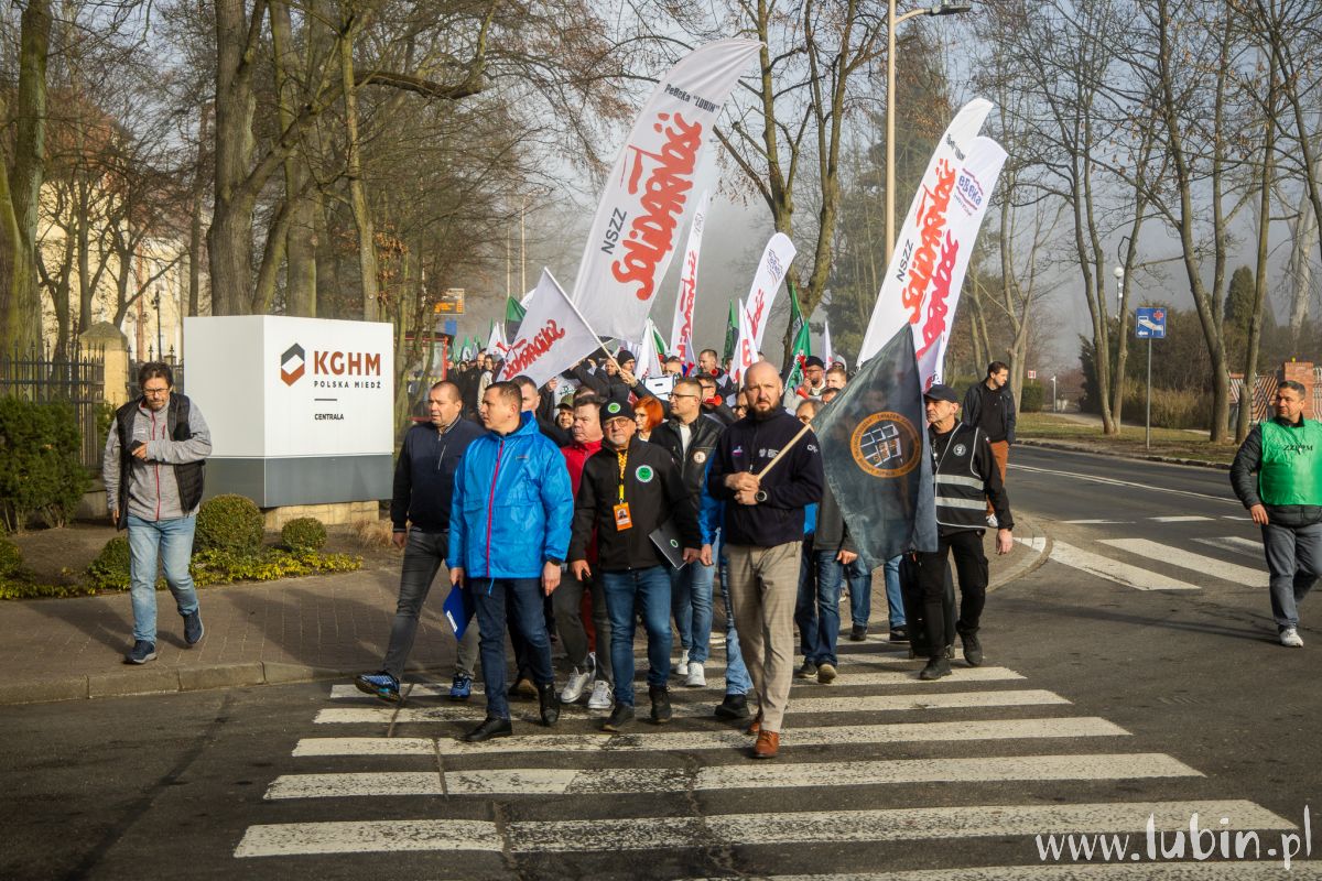 – Nie jesteśmy ludźmi gorszej kategorii. Pracujemy tak samo, wykonujemy takie same zadania, ale widać, że jesteśmy liczeni jako drugi sort – argumentowali dziś pracownicy Przedsiębiorstwa Budowy Kopalń, którzy domagają się wyższych płac, zbliżających ich do górników z KGHM. W dzisiejszej manifestacji i przemarszu pod Centralę „Polskiej Miedzi” wzięło udział kilkaset osób.