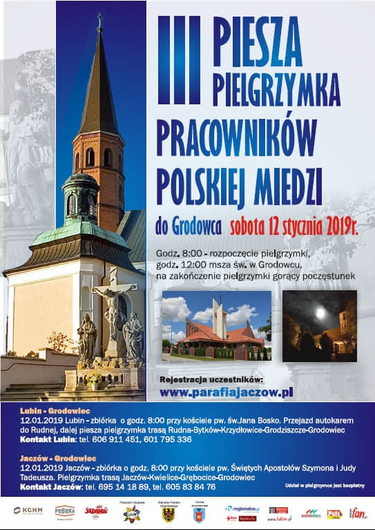 – Serdecznie zapraszamy wszystkich związanych z Zagłębiem Miedziowym do udziału w Pieszej Pielgrzymce Pracowników Polskiej Miedzi do Grodowca – zachęcają organizatorzy. – W tym roku pragniemy, wzorem lat ubiegłych, podjąć trud wędrówki zimową porą, aby pokłonić się Maryi, królującej tak blisko naszych kopalni. U progu Nowego Roku będziemy dziękować za otrzymane w ubiegłym roku łaski, prosić o bezpieczną pracę w 2019 roku oraz modlić się za zmarłych górników i pracowników Polskiej Miedzi.
