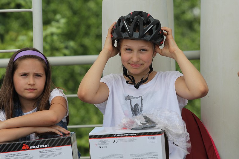 – Kask trzeba nosić nie tylko podczas jazdy na rowerze, ale i na rolkach, bo ratuje życie – mówi Natalia. – Wiem, że czasem to trudne, szczególnie dla dziewczynek, które muszą upiąć włosy, ale warto – dodaje.