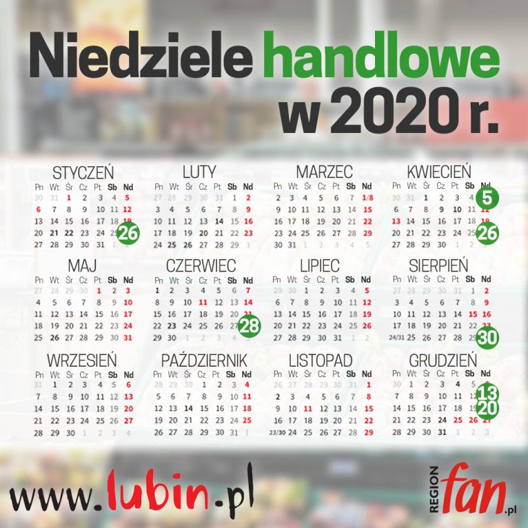 Niedziele handlowe w 2020 r. wypadną 26 stycznia, 5 kwietnia, 26 kwietnia, 28 czerwca, 30 sierpnia, 13 i 20 grudnia. W pozostałe niedziele w całym roku sklepy będą nieczynne. Wyjątek stanowić mogą piekarnie, apteki czy stacje benzynowe oraz sklepy, w których za ladą staną ich właściciele lub członkowie ich rodzin.