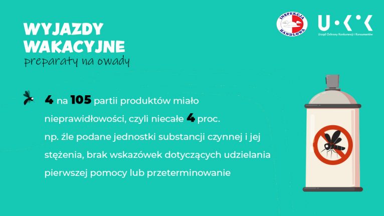 Inspekcja Handlowa sprawdziła oznakowanie oraz prawidłowość obrotu produktami, które chronią nas przed komarami, kleszczami, meszkami. Zakwestionowano jedynie 4 na 105 partii produktów (3,8 proc.) z powodu nieprawidłowego oznakowania i przeterminowania.