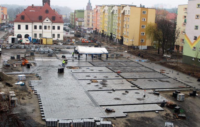 – Projekt rewitalizacji ma połączyć historyczne uwarunkowania i współczesne potrzeby – mówi Bartosz Żmuda z Creoproject, które zajęło się przygotowaniem rewitalizacji. – Wprowadzamy uporządkowaną zieleń miejską, która ma oddzielić zielonymi ekranami nowe, zrewitalizowane przestrzenie od tych zdegradowanych. Pojawi się droga gminna. Nawierzchnia placu będzie z jasnego kamienia z ciemnymi inkrustacjami z czarnego granitu szwedzkiego, które podkreślają średniowieczną parcelację tego miejsca, a jednocześnie budują fajne wnętrza dla różnych funkcji, z wodą, zielenią, gazonami. To jest przestrzeń, która może być przestrzenią dla sztuki, imprez sportowych, masowych, spotkań – mówi projektant, dodając, że serce miasta dzięki temu ożyje.