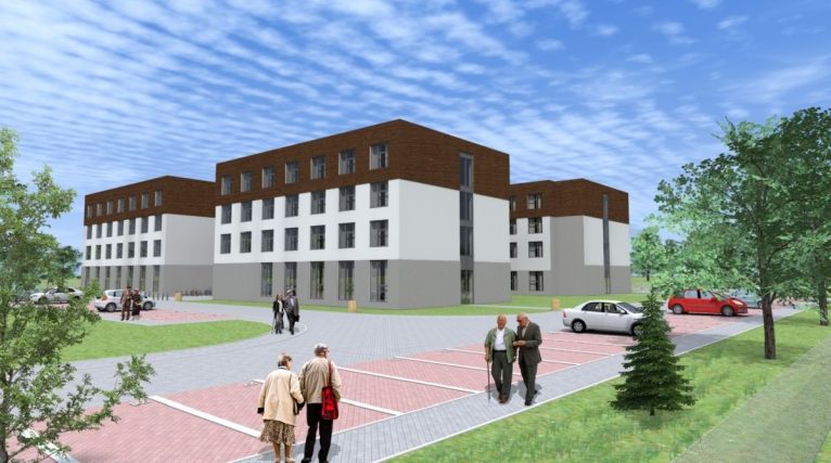 Szczegóły projektu budowy ośrodka opieki długoterminowej, czyli domu pomocy społecznej dla starszych osób Robert Raczyński przedstawi na kolejnej konferencji prasowej. Na razie możemy zobaczyć jedną wizualizację budynku.