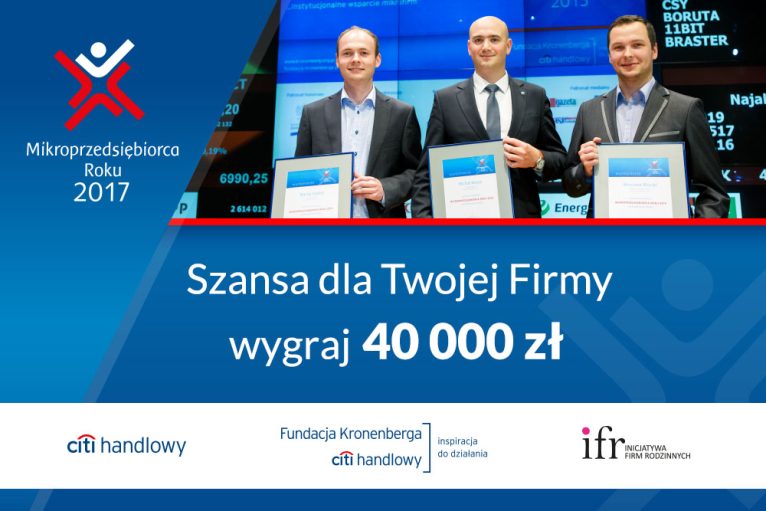 To ostatnia szansa dla właścicieli małych firm na udział w konkursie Mikroprzedsiębiorca Roku 2017. Dla tych, którzy dali sobie czas do namysłu, organizatorzy konkursu przedłużyli termin zgłoszeń do 8 kwietnia. Jeżeli chcesz zaprezentować swoją działalność i osiągnięcia, nawiązać nowe znajomości biznesowe, a przy tym wygrać 40 tysięcy złotych – zgłoś swoją firmę do konkursu!