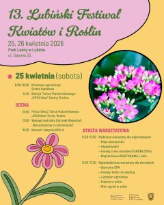 W ostatni weekend kwietnia Park Leśny zamieni się w tętniącą życiem, kolorową przestrzeń, pełną zapachów, barw i ogrodniczych inspiracji. 25 i 26 kwietnia odbędzie się 13. edycja Lubińskiego Festiwalu Kwiatów i Roślin.