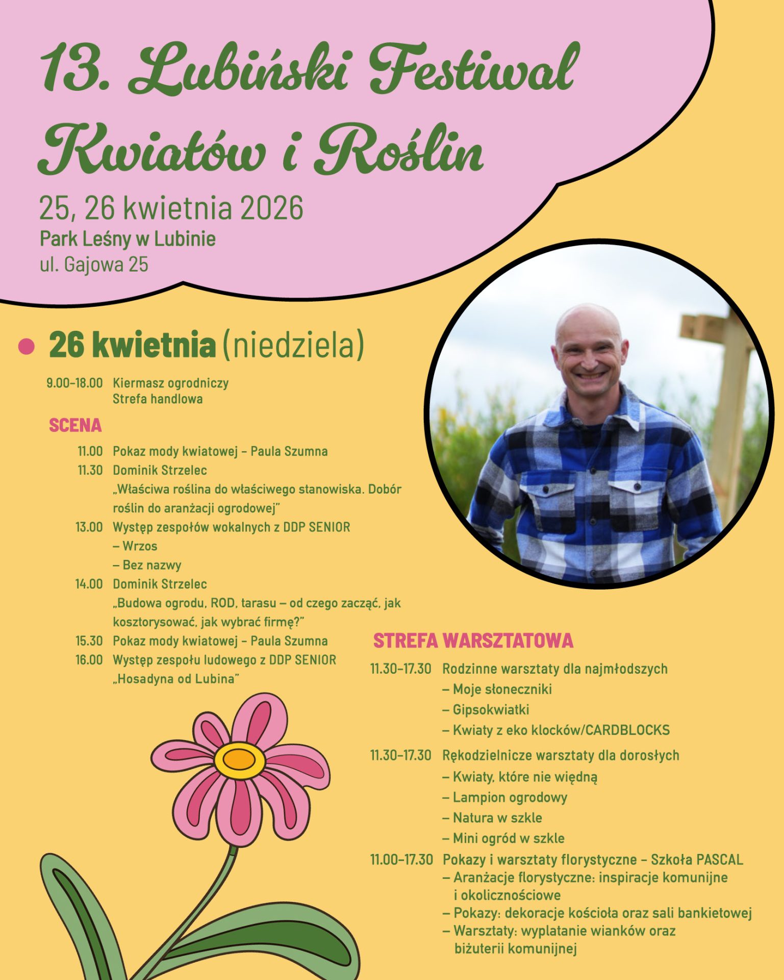 – Gościem specjalnym festiwalu będzie Dominik Strzelec – znany popularyzator ogrodnictwa, który poprowadzi spotkania i panele dyskusyjne. Uczestnicy będą mogli skorzystać z jego doświadczenia, zadać pytania i uzyskać cenne wskazówki dotyczące projektowania ogrodów, doboru roślin czy aranżacji zielonych przestrzeni – informuje Joanna Kulik.
