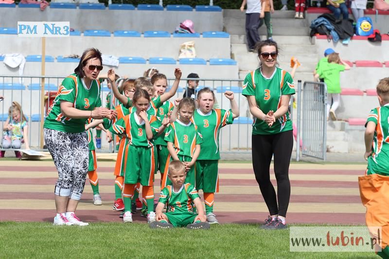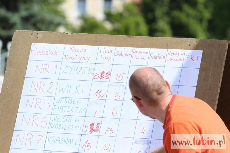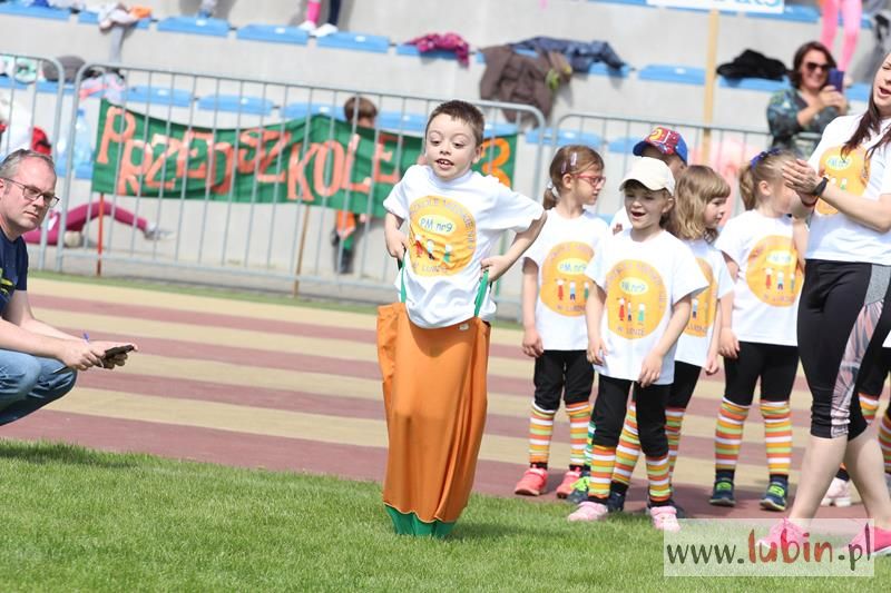 Młodzi lubinianie z piętnastu lubińskich przedszkoli stanęli dziś do rywalizacji sportowej w kilku konkurencjach jak: toczenie piłki lekarskiej, hula hop, skoki w worku, sztafeta czy skakańce. Sekundowali im pracownicy RCS, a także mistrzynie Polski Superligi Kobiet – szczypiornistki MKS Zagłębia Lubin, które podczas konkurencji przedszkolaków, same przypomniały sobie swoje lata dzieciństwa.