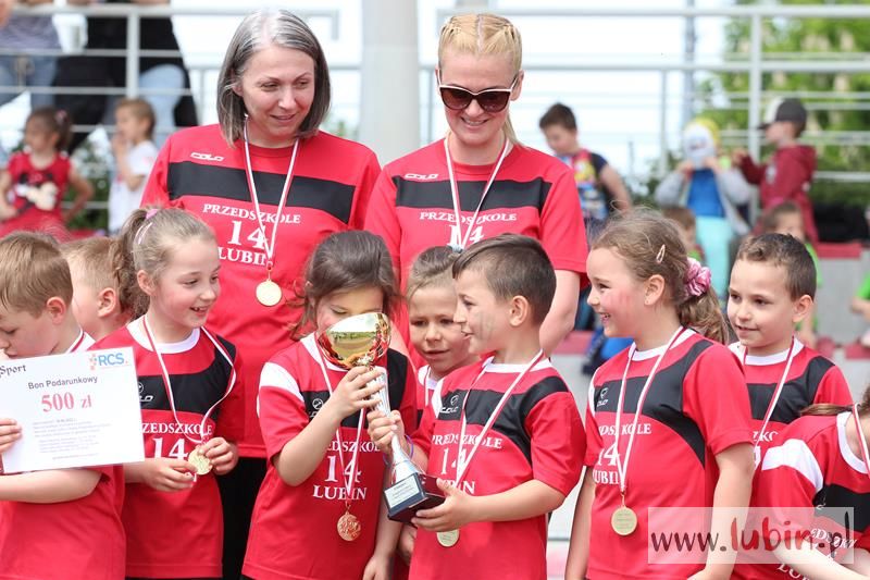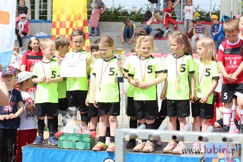 Pierwsze miejsce zajęła placówka numer 14. Na drugim miejscu podium uplasowała się paczka z Przedszkola Miejskiego nr 5, a na trzecim miejscu uplasowały się dzieci z placówki numer 9. Wszystkie pozostałe przedszkola sklasyfikowano na czwartym miejscu. Pierwsze trzy miejsca prócz medali otrzymały także pamiątkowe puchary i bony podarunkowe na obiekty RCS. Dodatkowo nagrody otrzymały opiekunki przedszkolaków, które wzięły udział w konkurencji toczenia piłki lekarskiej, a najmłodszym towarzyszył w dobrej zabawie Krecik z MKS Zagłębia Lubin.