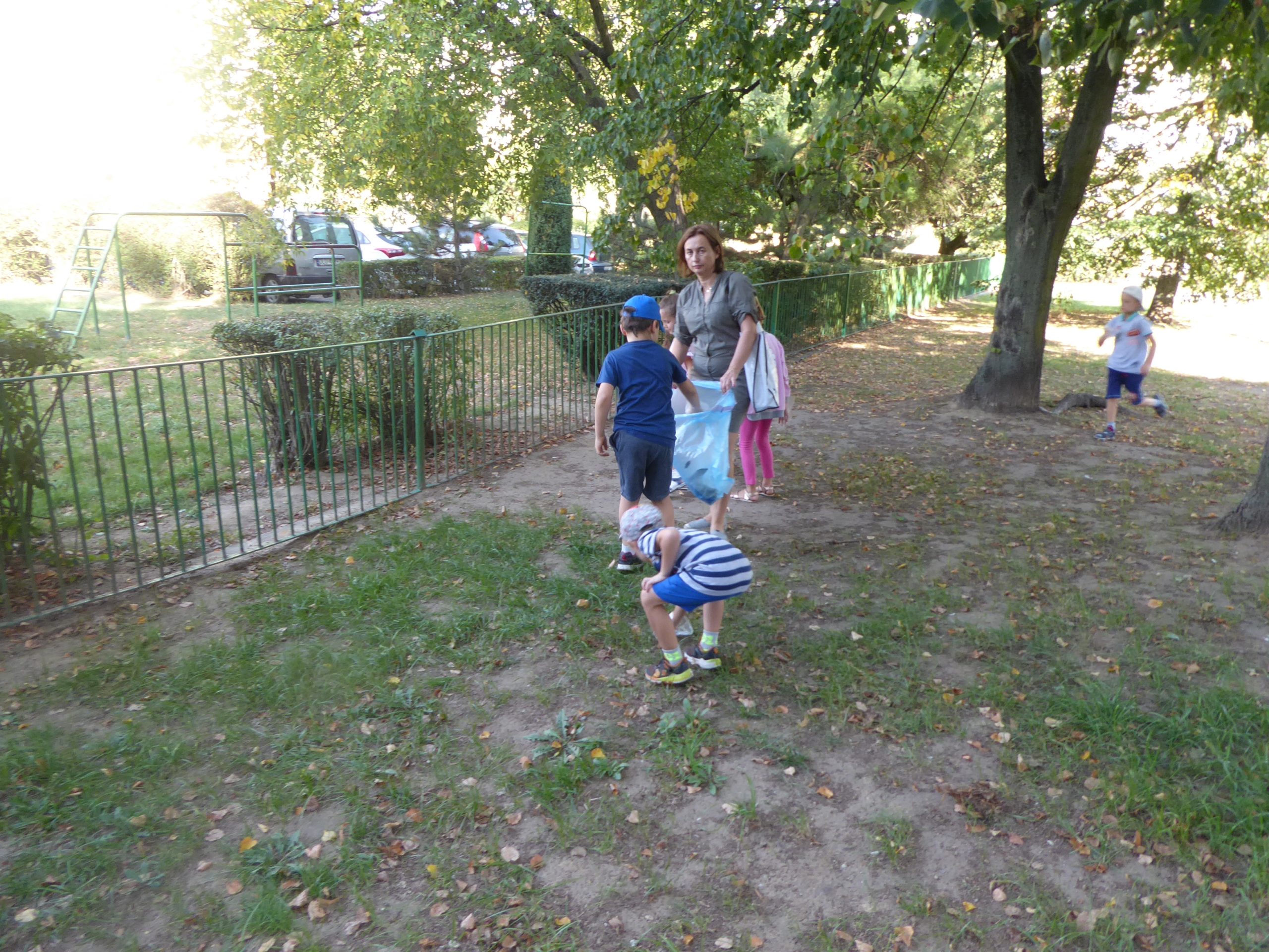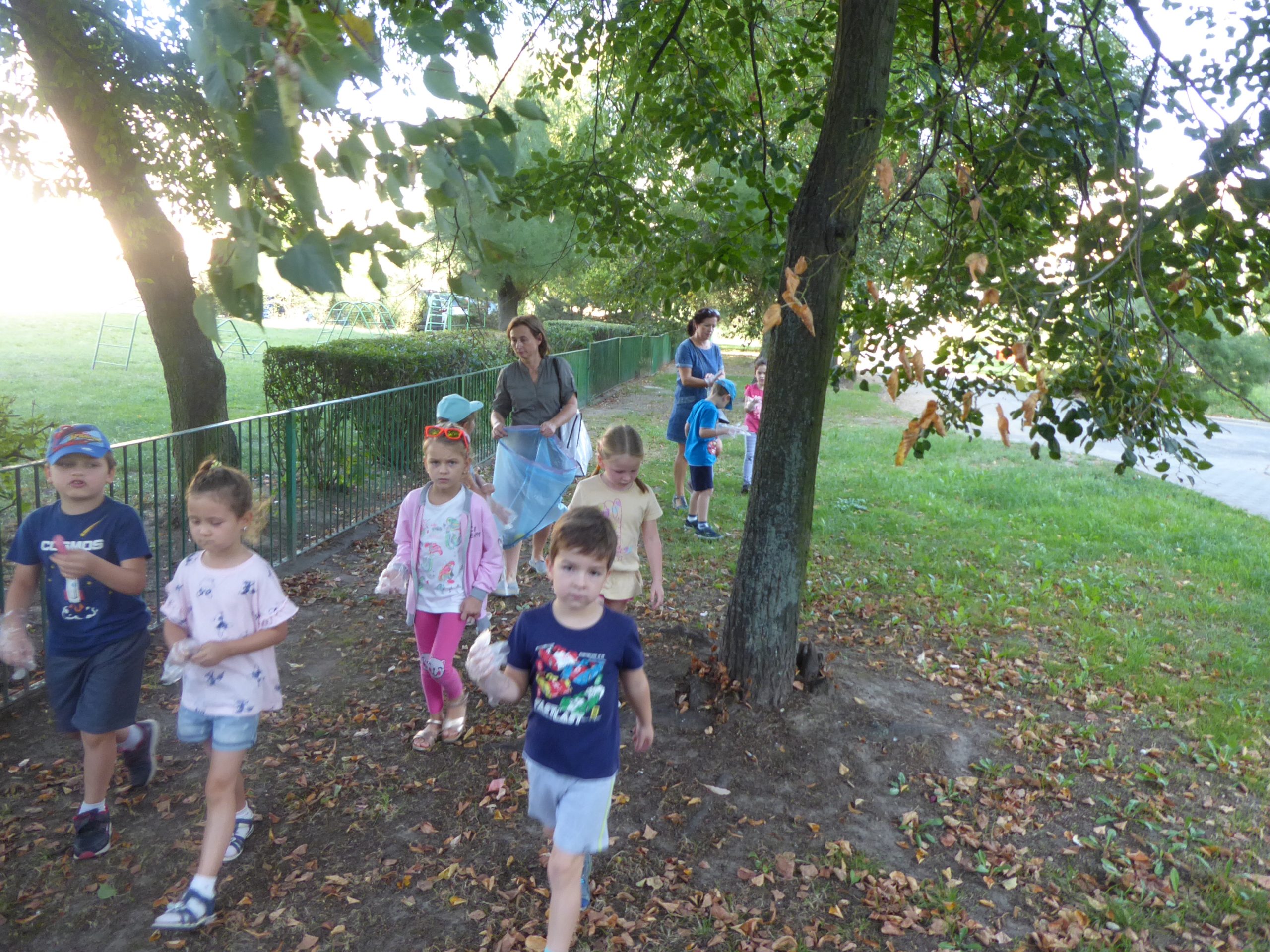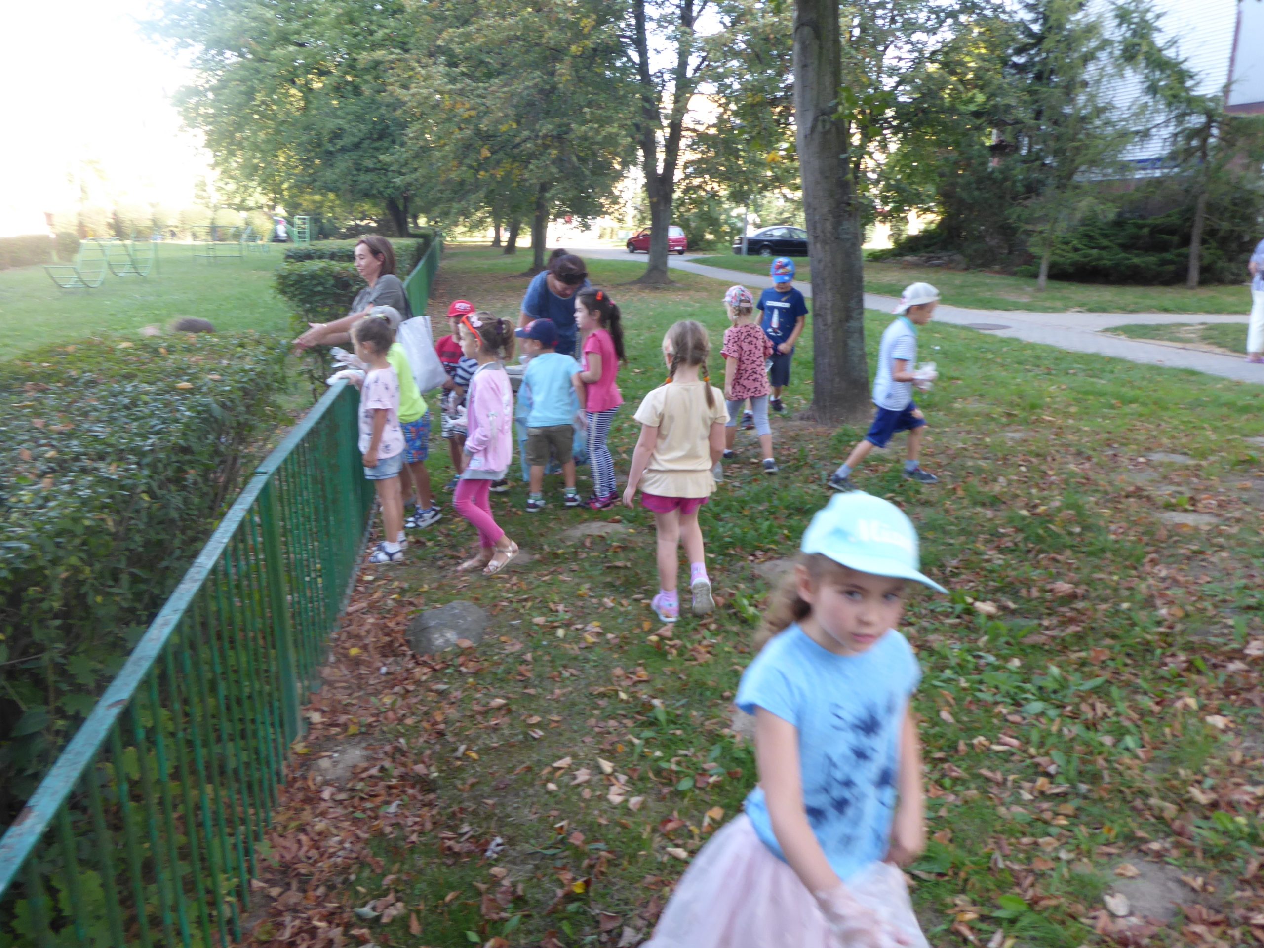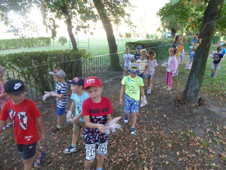 Wszystkie dzieci otrzymały rękawiczki i worki, po czym z całym sercem zaangażowały się w akcję. Zapełnione worki trafiły do kosza, a maluchy dowiedziały się, że dbałość i szacunek o przyrodę to codzienna praca.