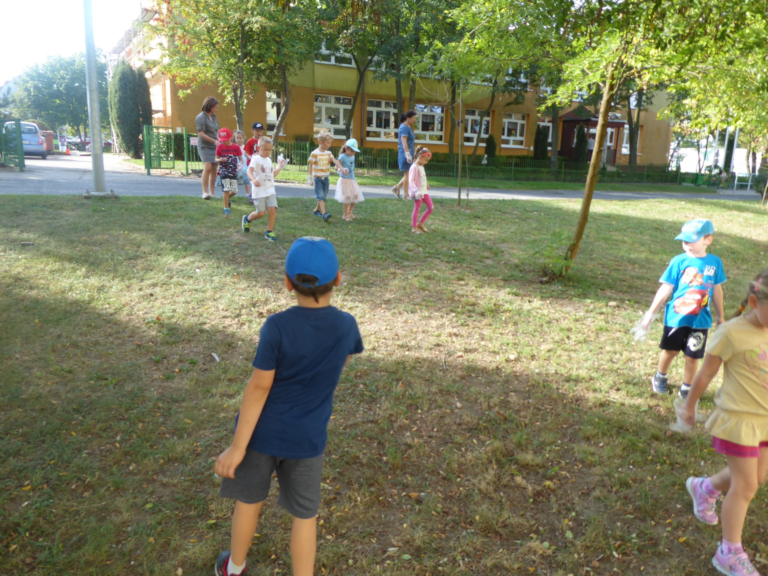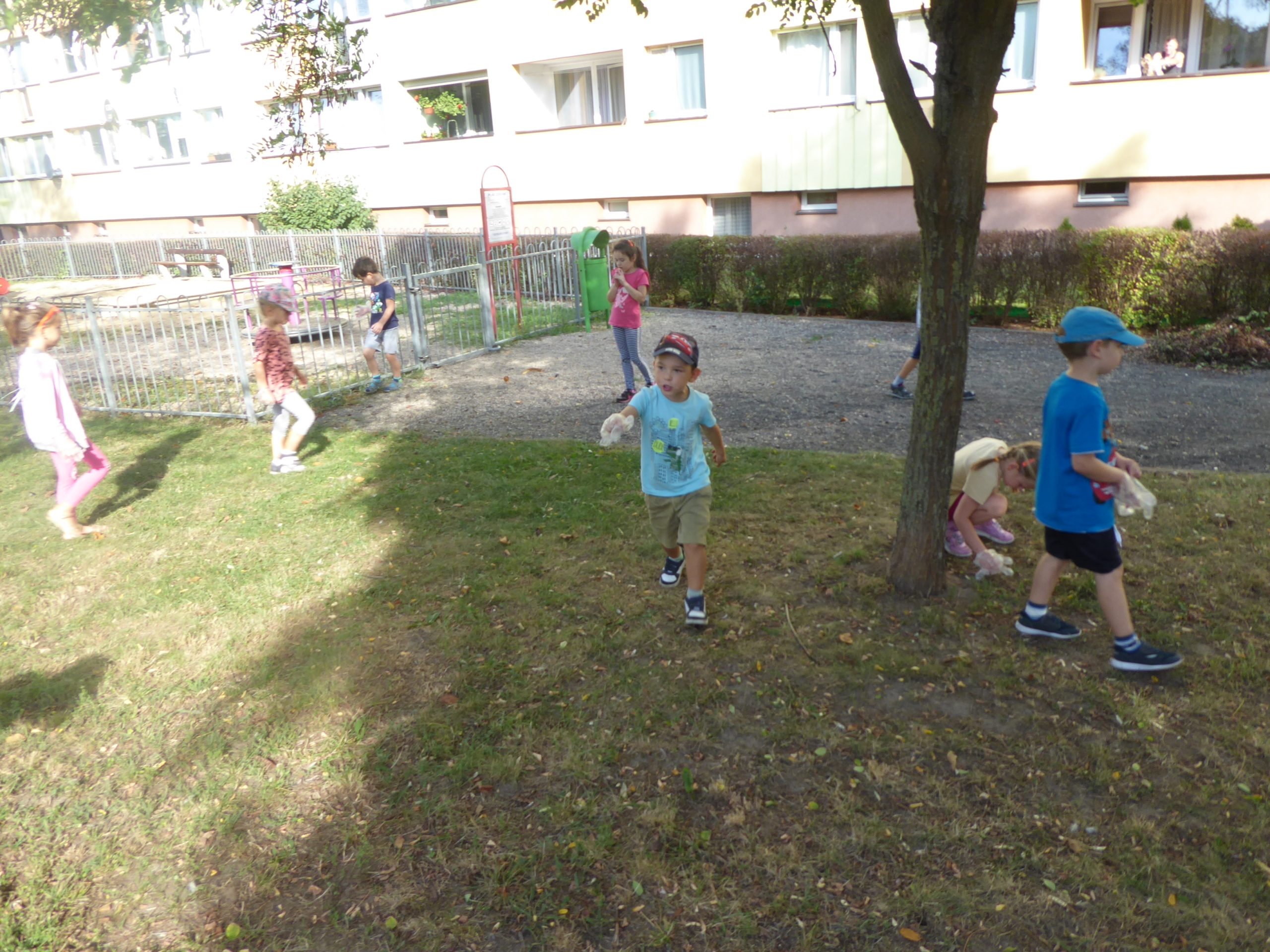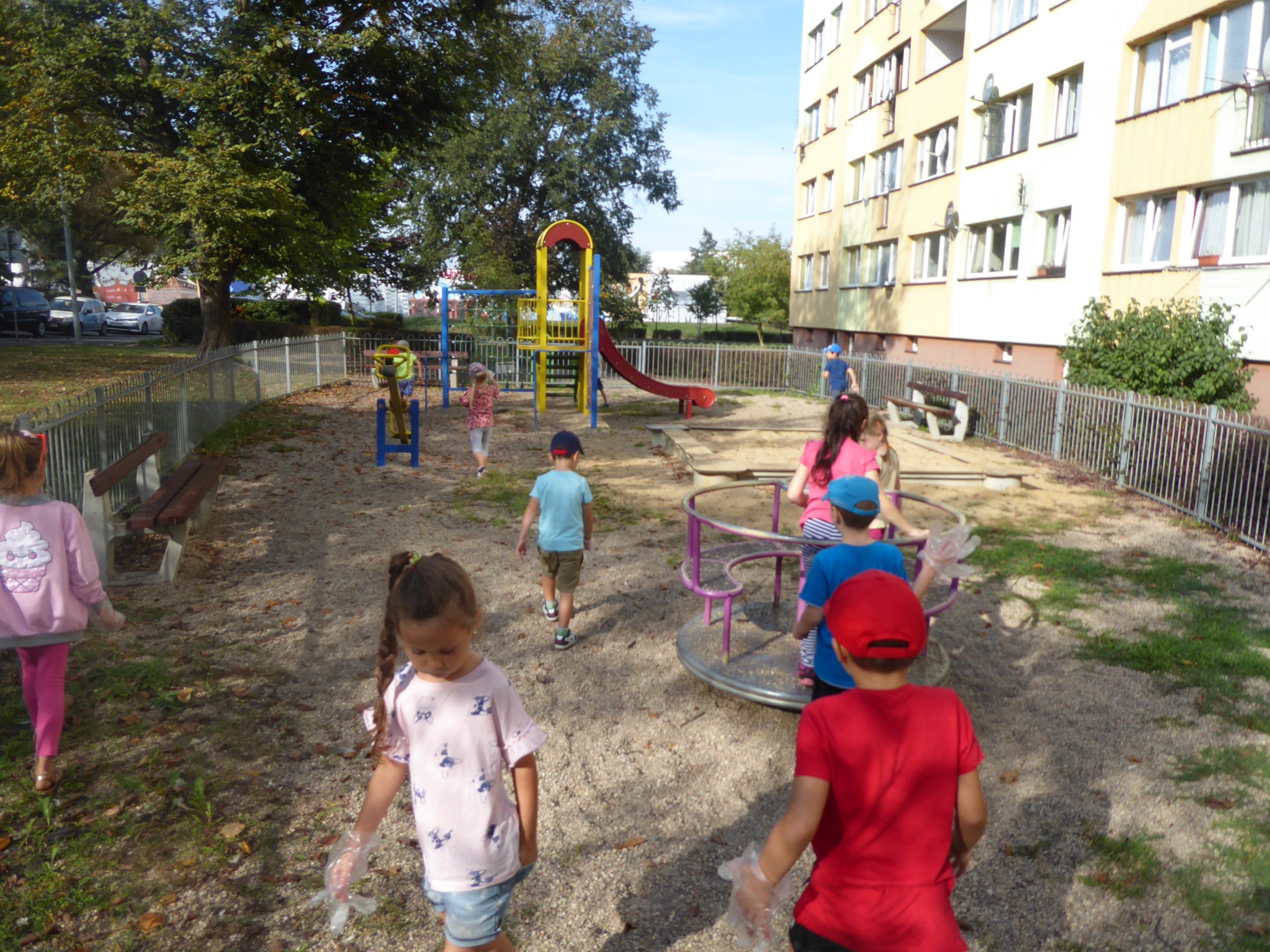 Wszystkie dzieci otrzymały rękawiczki i worki, po czym z całym sercem zaangażowały się w akcję. Zapełnione worki trafiły do kosza, a maluchy dowiedziały się, że dbałość i szacunek o przyrodę to codzienna praca.