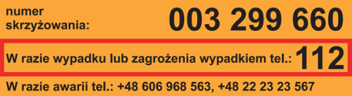 Na żółtej naklejce znajdują się: indywidualny numer identyfikacyjny przejazdu kolejowo-drogowego, numer alarmowy 112 i inne numery awaryjne. Numer identyfikacyjny przypisany jest do konkretnego przejazdu. Dzięki niemu podczas interwencji operator numeru 112 szybko zlokalizuje przejazd na sieci kolejowej i w terenie. W przypadku np. awarii auta kierowca po połączeniu się z numerem alarmowym 112, podaje indywidualny numer identyfikacyjny przejazdu z żółtej naklejki. Operator nr 112 powiadamia służby PKP PLK. W ciągu kilku minut ruch pociągów zostanie wstrzymany, zmniejszy się więc ryzyko wypadku na przejeździe.