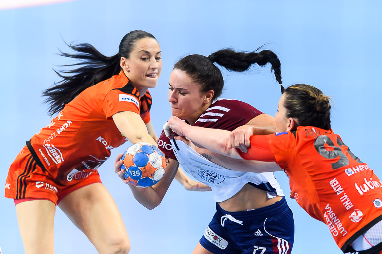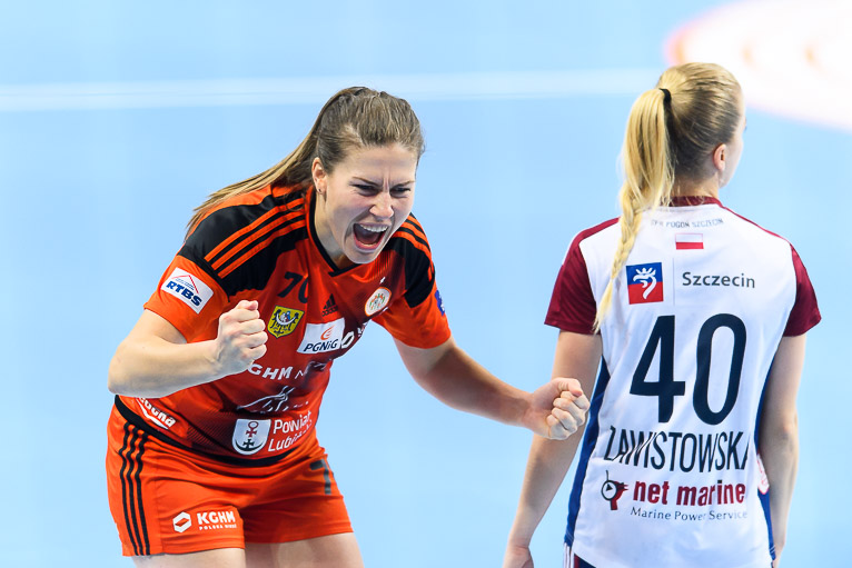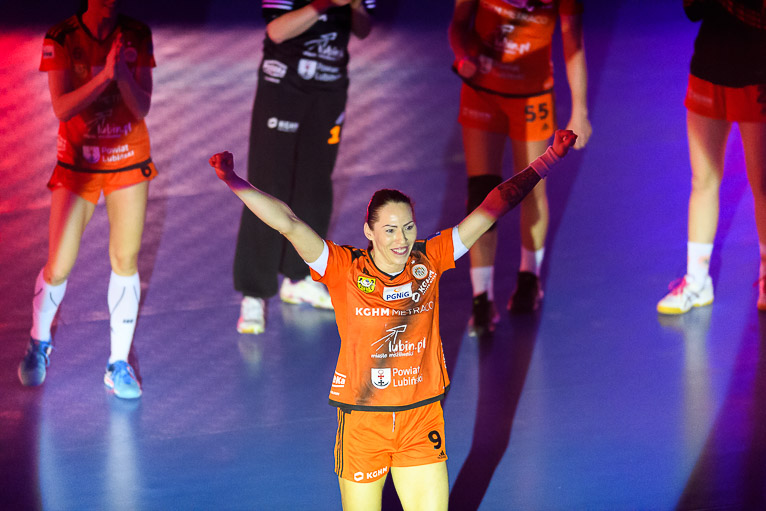 Druga część spotkania zaczęła się od niedokładności i strat po obu stronach. Na pierwszą bramkę po przerwie czekaliśmy pięć minut. Wynik po przerwie i zarazem worek z bramkami otworzyła Sarka Marcikova. Po jej trafieniu miedziowe szybko dwukrotnie wpisały się do protokołu i mieliśmy remis. Na bramki szczecinianek szybko odpowiadały lubinianki i byliśmy świadkami wyrównanej gry i walki bramka za bramkę. Metraco Zagłębie odzyskało prowadzenie w 39. minucie grając w osłabieniu, chwilę później gospodynie prowadziły różnicą dwóch bramek – 21:19. Później było jeszcze lepiej, z wielkie brawa od kibiców zebrała Kinga Grzyb, która dwa razy trafiała do bramki rywalek w kilkanaście sekund. Dzięki temu było 24:21, a bramka Karoliny Semeniuk na 25:21 sprawiła, że miedziowe na kwadrans przez końcem znalazły się w komfortowej sytuacji. Przynajmniej tak się mogło wydawać. Pogoń nie zamierzała się poddawać i postawiła wszystko na jedną kartę. Niespełna dziesięć minut przed końcem miedziowe prowadziły już tylko jedną bramką. Na domiar złego w 54. minucie czerwoną kartę z gradacji kar otrzymała Jovana Milojević i miedziowe musiały radzić sobie bez kołowej. Chwilę później z karnego na remis trafiła Agata Cebula, a lubinianki grały w podwójnym osłabieniu. Pięć minut przed końcem był remis po 27, co zwiastowało wielkie emocje w samej końcówce. Lubinianki w arcytrudnej sytuacji pokazały klasę i podwójną przewagę wygrały 1:0, wychodząc na prowadzenie! Już w komplecie bramkę na 29:27 zdobyła Karlina Semeniuk i miedziowe przybliżyły się do upragnionego zwycięstwa. Przypieczętowała je półtorej minuty przed końcem Victoria Belmas. Metraco Zagłębie Lubin wygrało bardzo ważne spotkanie i pokazało, że o żadnym kryzysie nie może być mowy.