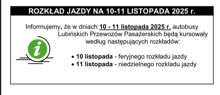 Aktualny rozkład jazdy można sprawdzić na stronie pks.lubin.pl.