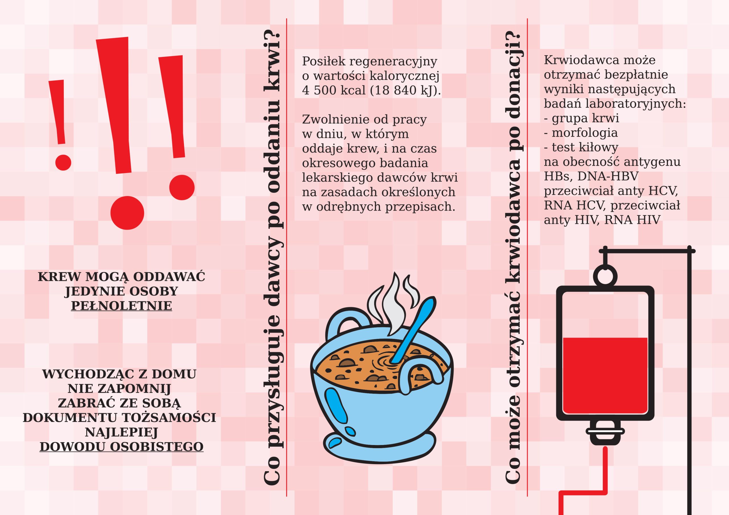 Trzeba też pamiętać o dowodzie osobistym, bo krew mogą oddawać tylko osoby pełnoletnie.