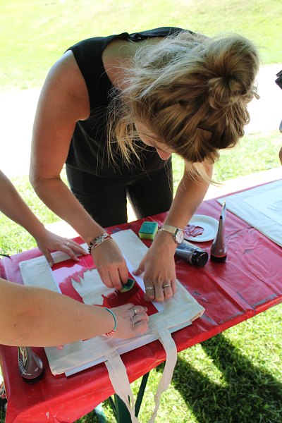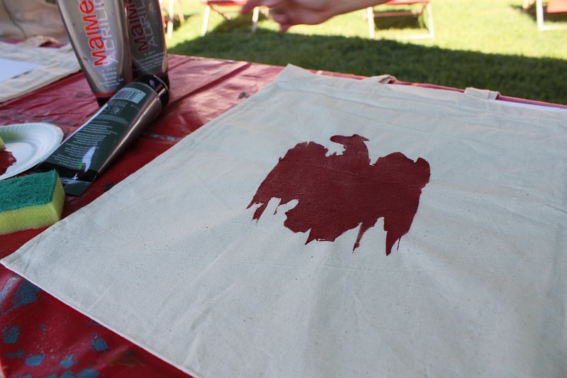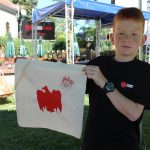 Na torbie można umieścić orła odbitego z szablonu, napis „Dumni z rodziców” lub pieczątkę.