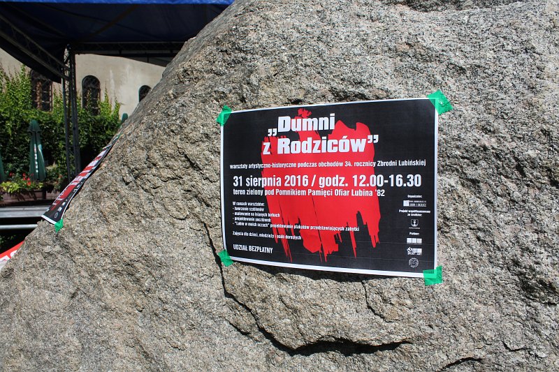 Kto jeszcze nie wziął udziału w warsztatach na Wzgórzu Zamkowym, ma trochę czasu, żeby tu przyjść. Zajęcia potrwają do godziny 16.30. Potem zaplanowano oficjalne wydarzenia. O godzinie 17 odbędzie się msza w małym kościele, zaś o 18 rozpoczną się uroczystości pod pomnikiem Pamięci Ofiar Lubina’82.