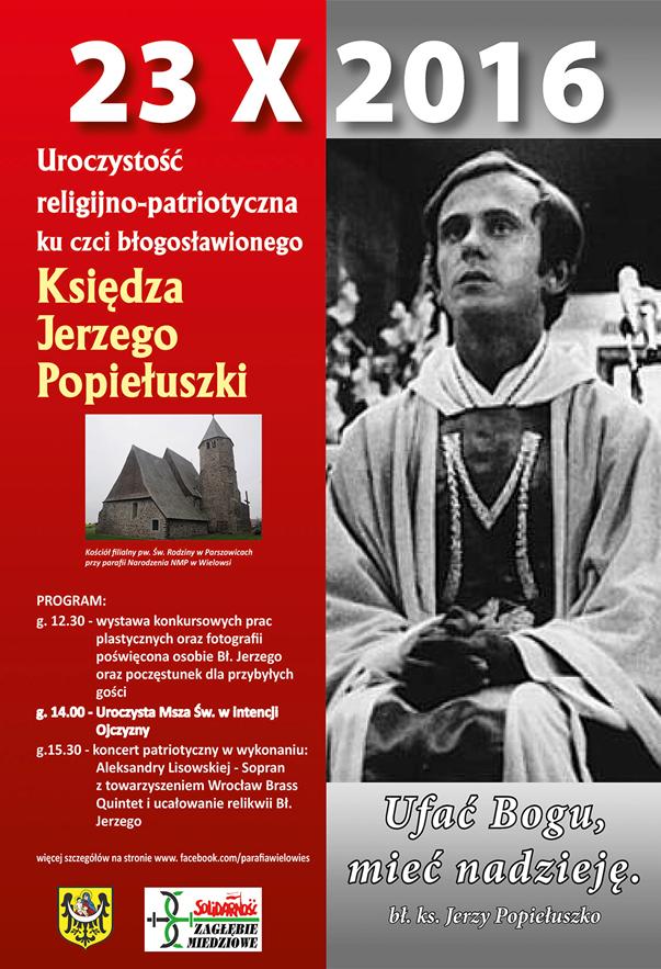 Uroczystości rozpoczną się mszą św. w kościele św. Rodziny o godzinie 14. Później będzie można wysłuchać koncertu patriotycznego w wykonaniu sopranistki Aleksandry Lisowskiej, której będzie towarzyszyć Wrocław Brass Quintet, oraz ucałować relikwie. Przygotowana zostanie również wystawa plastyczna i fotograficzna poświęcona życiu księdza Jerzego.