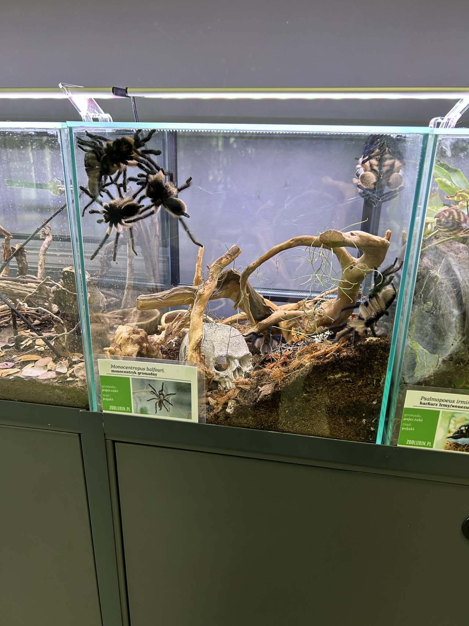 Monocentryki gromadne – w lubińskim zoo jest terrarium z 10 takimi ptasznikami – dostają sześć świerszczy i cztery szarańcze w tygodniu na całe terrarium, czyli około 312 świerszczy w ciągu roku oraz 208 szarańczy.