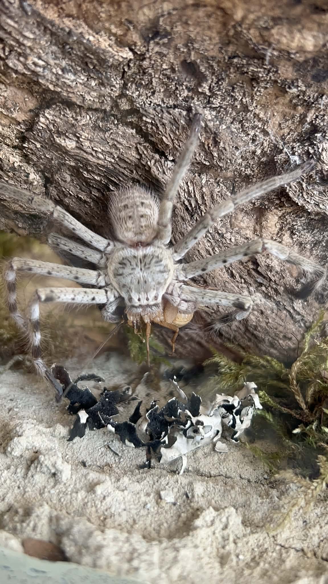 Pająki: harfiarz irmy, skrzydłowarg słoneczny, holconia murrayensis, szafironóżka zmiennobarwna, szpilowłoska białokolanowa żywią się szarańczą. Każdy z okazów zjada po jednej szarańczy w tygodniu.
