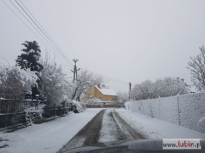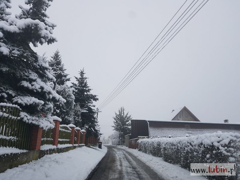 …. śniegu nasypała – tak jak w dziecięcej piosence, w końcu czuć, że już grudzień. I że zbliżają się święta. Wprawdzie w Lubinie nie ma go zbyt dużo, ale już okoliczne miejscowości wyglądają wprost bajkowo. Z drugiej strony uważać muszą kierowcy, bo warunki na drogach nie są najlepsze.
