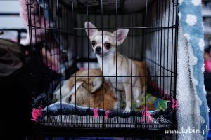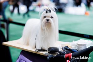 Nie wszystkie psiaki jednak są tak towarzyskie jak ona. Wśród biorących udział w dzisiejszej wystawie są i bardzo ruchliwe, jak i spokojne czworonogi. Ze stoickim spokojem na swoją kolej, by zaprezentować się na ringu, czeka dwuletnia Gawroszka – polski owczarek nizinny z hodowli Via Rivendall.
