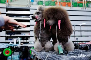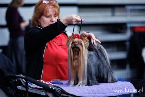 Również na samej wystawie, tuż przed wejściem na ring, Gawroszka jest jeszcze czesana. Podobne wyglądają przygotowania do prezentacji owczarka szetlandzkiego Rascala. Choć ma dopiero rok, ma za sobą już około 25 wystaw, a na na koncie tytuł międzynarodowego championa.