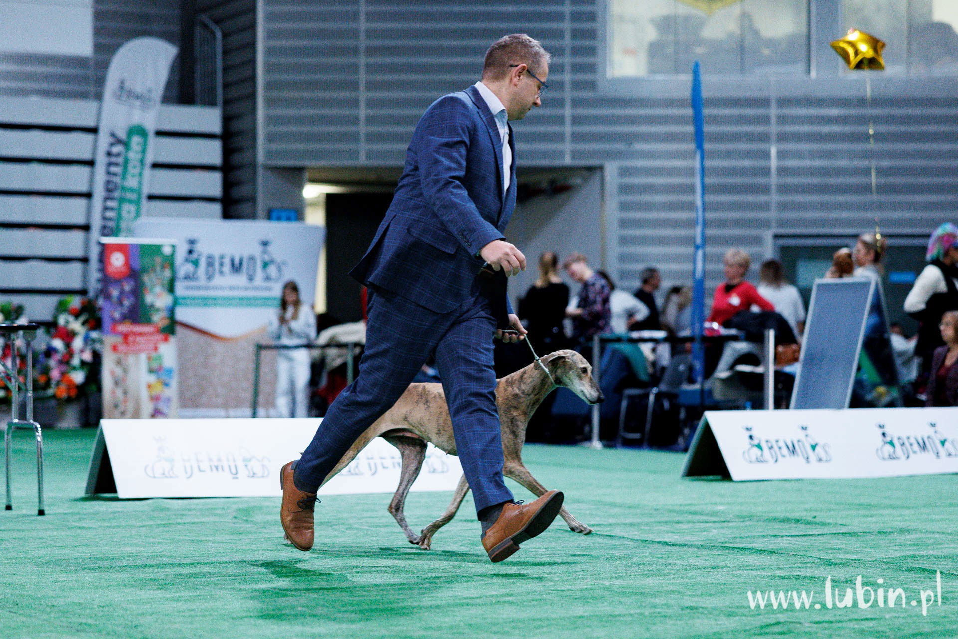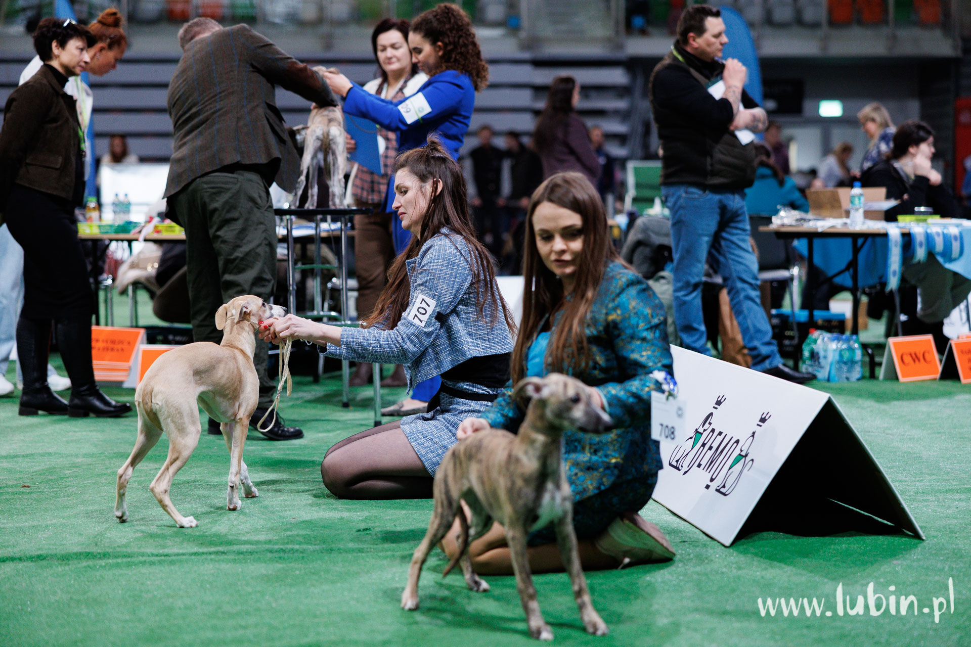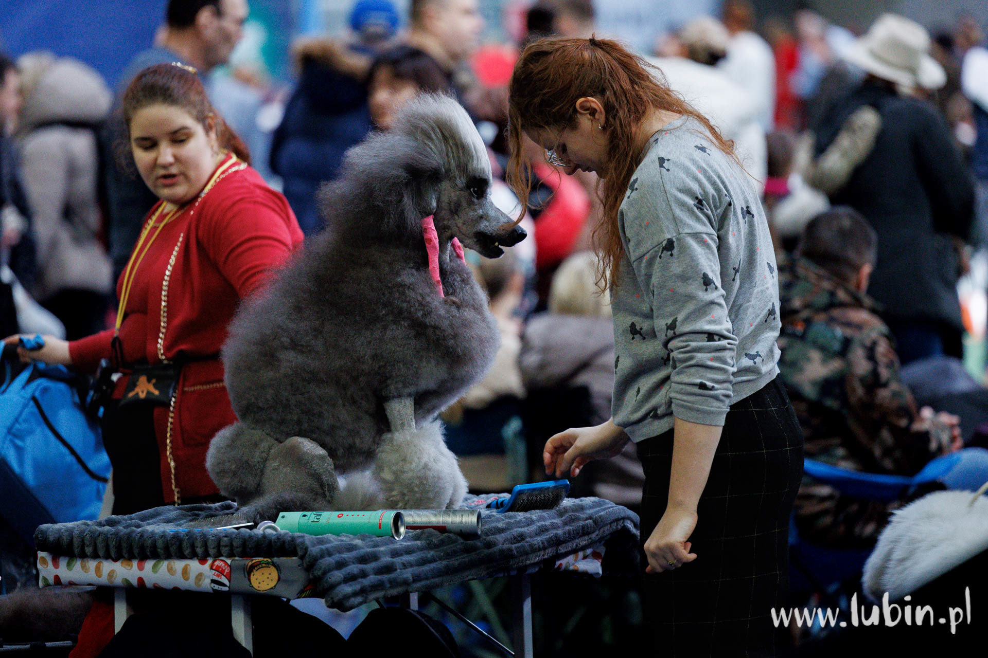 – Pozwiedzał już trochę Europę, ma za sobą światówkę. Jest międzynarodowym championem młodzieży, championem Czech, Macedonii. Mam nadzieję, że tutaj uda się skończyć z championem młodzieżowym Polski – mówi właścicielka Rascala Aneta Cependa z Wrocławia, przyznając, że trening i oswojenie psa z wystawami jest bardzo ważne. – Cały czas trenujemy, praktycznie codziennie, ale nie tylko to, żeby stał czy biegał, ale przede wszystkim, żeby był oswojony z takim środowiskiem, jak właśnie taka hala sportowa, bo tu jest pogłos, jest dużo psów, to jest stresujące. A i pies czuje, jak właściciel się stresuje, więc to są nieustanne przygotowania – przyznaje.