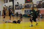 Derby Młodziczek lepiej zaczęły zawodniczki EUCO-UKS Dziewiątki Legnica. Pierwsza di siatki lubinianek rzuciła Aniela Rogala, a zaraz po niej Natalia Oleszek. Po pięciu minutach Zagłębie po celnych trafieniach Angeli Winkowskiej oraz Dominiki Swędrak doprowadziło do remisu po 2, a następnie wyszło na prowadzenie za sprawą dwóch bramek Anny Derwich (4:2). Miejscowe nie oddały już pozytywnego rezultatu rzucając kolejne bramki. Natalia Najdek po rzucie karnym i Angela Winkowska po kontrataku dorzuciły następne gole i zespół Izabeli Kałużny wygrywał 6:3. Rywalki pod koniec pierwszych dwudziestu pięciu minut obudziły się i zaczęły odrabiać straty doprowadzając nawet do stanu remisowego na kilkanaście sekund przed końcową syreną. Bramka Dominiki Swędrak dała jednak Lubinowi prowadzenie do przerwy, 9:8.