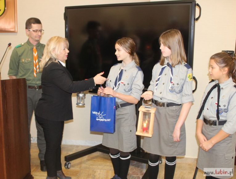 Przed rozpoczęciem sesji przewodnicząca rady miejskiej Bogusława Potocka odebrała z rąk harcerzy Betlejemskie Światło Pokoju, a przekazała im w zamian paczkę ze słodyczami.