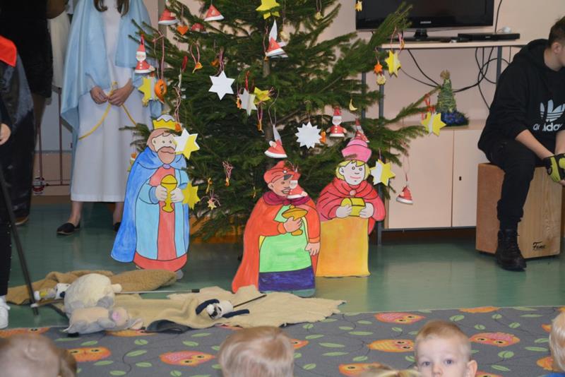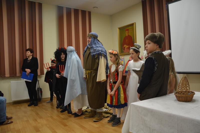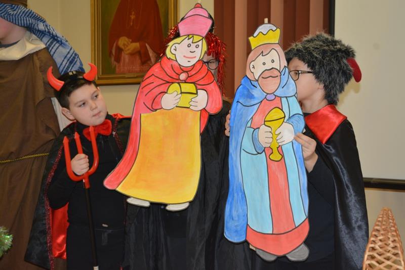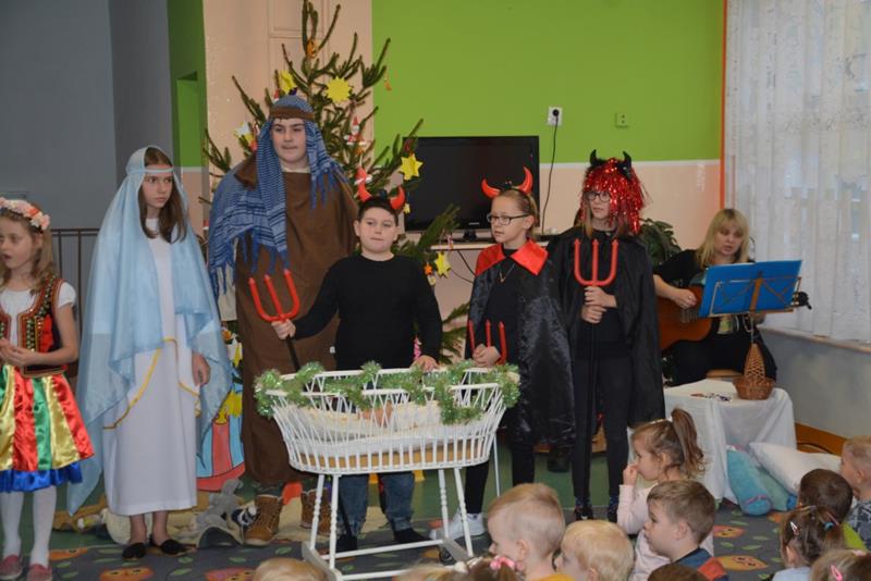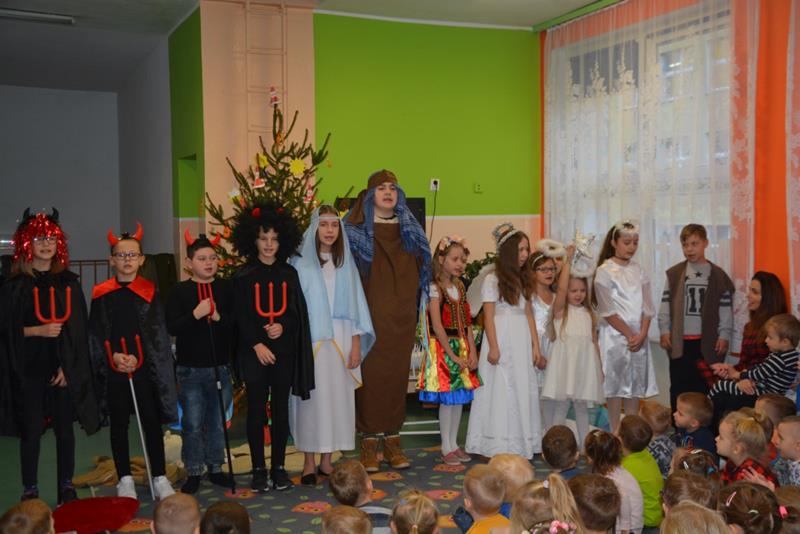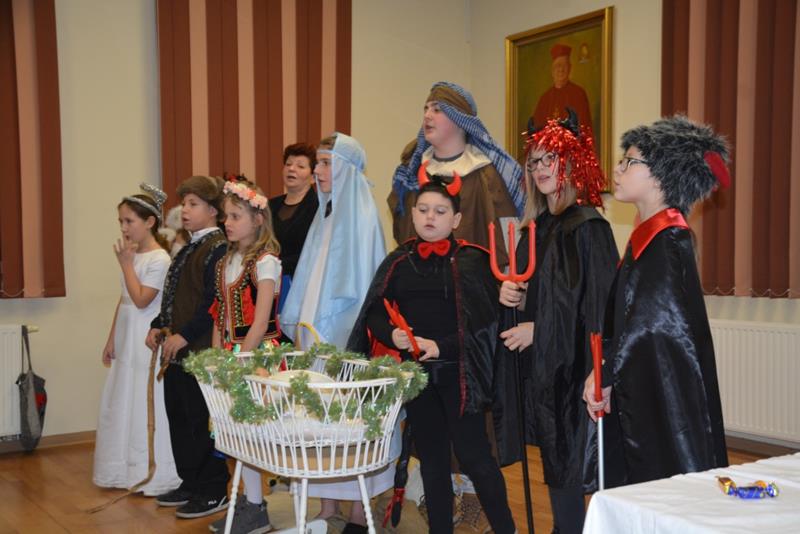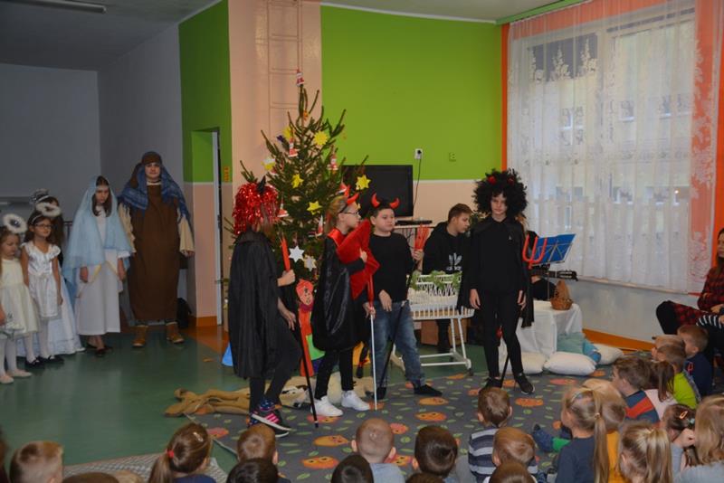 Przedstawienie pełne było humoru, radosnych emocji i nastrojowego kolędowania. Młodzi pasjonaci teatru z zapałem i swadą odgrywali swoje role, wspaniale się przy tym bawiąc i dostarczając radości i wzruszeń widzom. Zabawne scenki, związane z kradzieżą żłóbka przez diabły i odzyskanie go przez sprytne aniołki, nawrócenie diabełków oraz kłótnie aniołków wywoływały salwy śmiechu i burze oklasków.