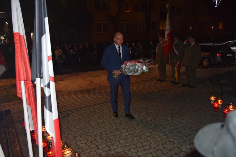 Pod tablicą pamięci kwiaty złożyli przedstawiciele lokalnych samorządów, jednostek organizacyjnych, służb mundurowych oraz mieszkańcy. Odśpiewano również hymn narodowy i zapalono znicze.