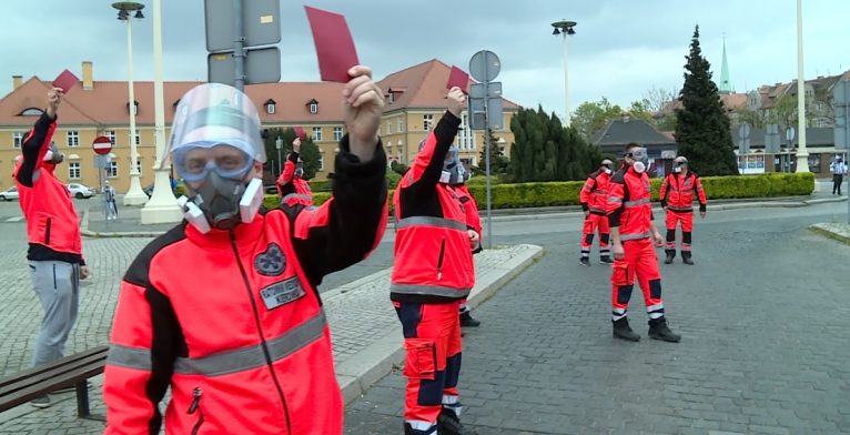 Ratownicy medyczni z naszego regionu pokazali czerwoną kartkę swojej szefowej i protestowali w związku z brakiem wsparcia ze strony dyrekcji. Domagają się większych dodatków za ciężką pracę w czasie pandemii, po 500 zł brutto dla wszystkich.