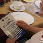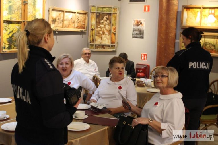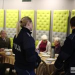 Policjantki zjawiły się, by przestrzec starsze osoby przed oszustami oraz przypomnieć seniorom o noszeniu odblasków. Funkcjonariuszki przechodziły między stolikami, rozmawiały z gośćmi i rozdawały ulotki.