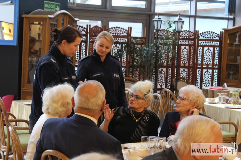 Seniorów odwiedziły również policjantki z Komendy Powiatowej Policji w Lubinie. – Zaszczytnie mi nosić mundur przy państwie – rozpoczęła przemówienie aspirant sztabowy Sylwia Serafin, oficer prasowy lubińskiej komendy.