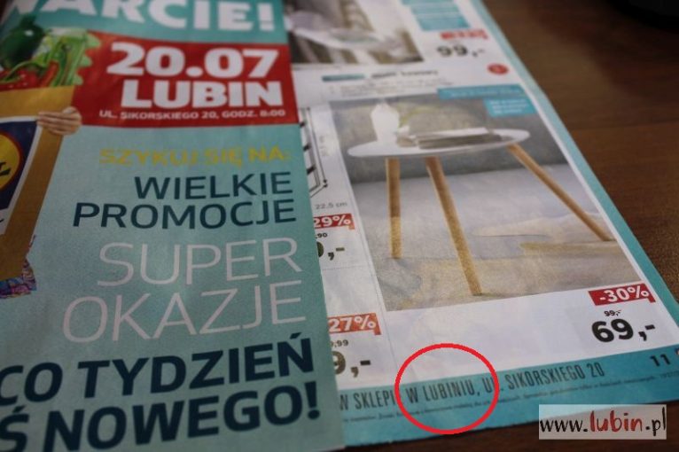 Rzecz w tym, że lubinianie nie chcą mieszkać „w Lubiniu”. Lidl, który otwiera się w galerii, musi więc wiedzieć, że popełnił duże faux pas. Bo ich oferta raz dotyczy sklepu w Lubinie, a raz w Lubiniu…