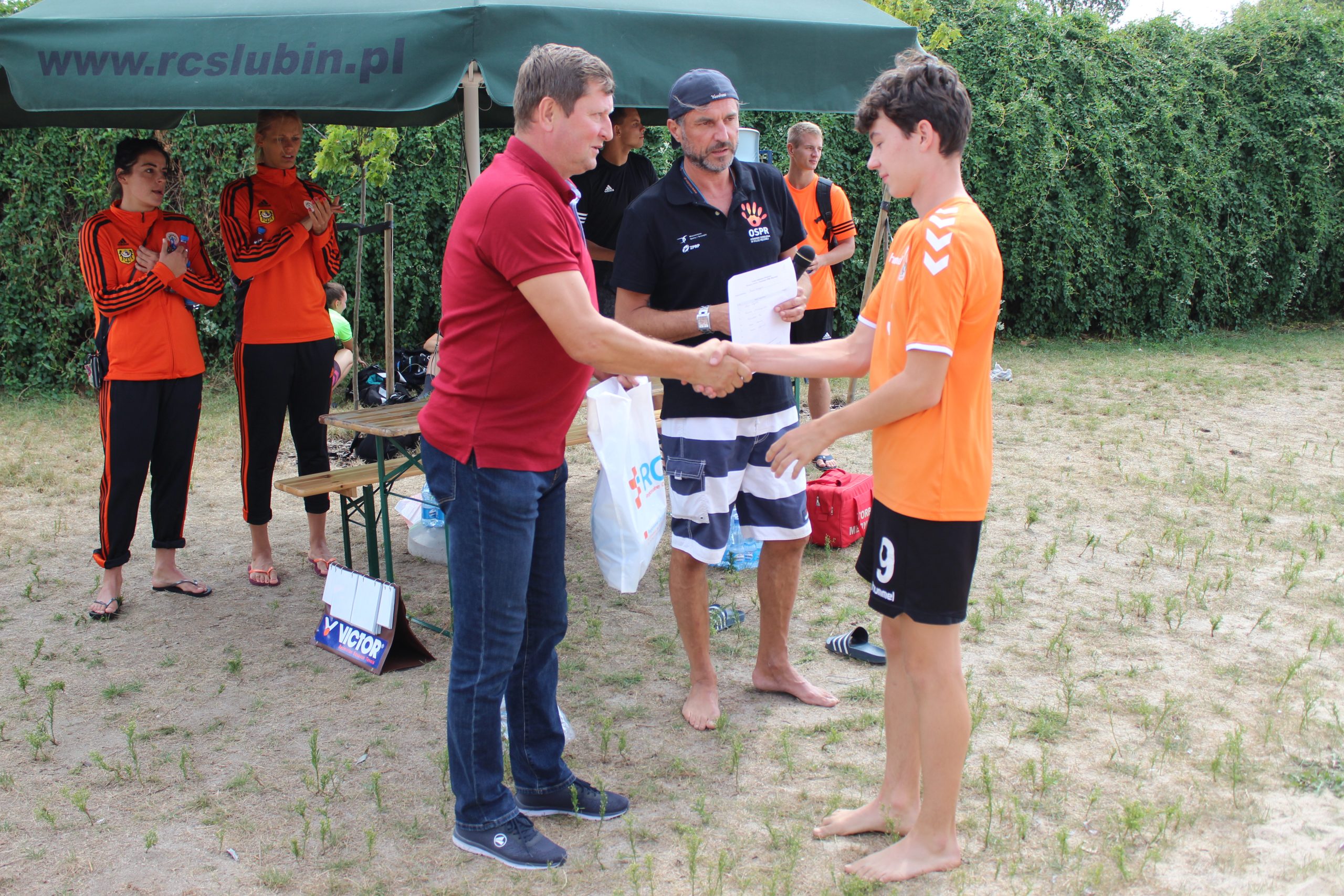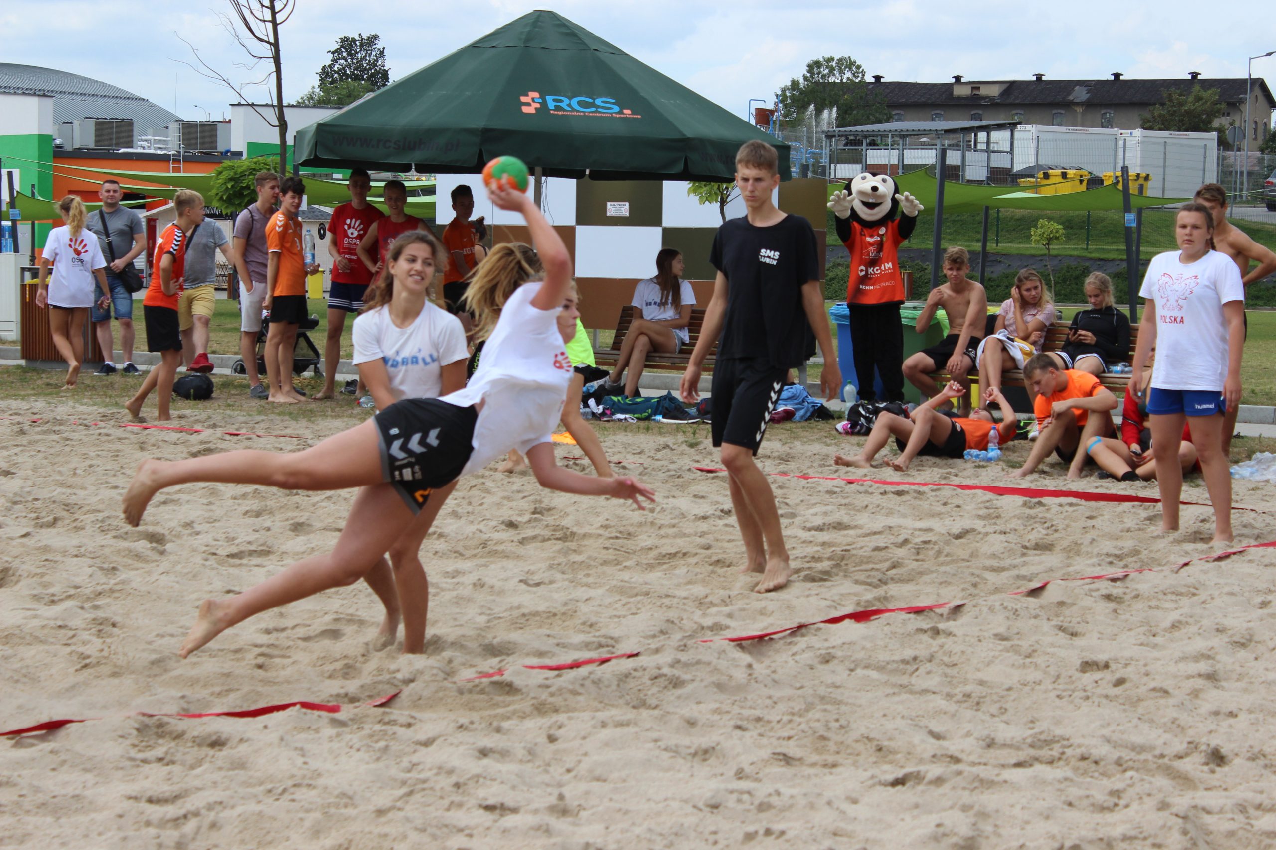 Młodzież rywalizowała na boisku piaszczystym przy basenach Regionalnego Centrum Sportowego W zawodach wzięło udział pięć drużyn, złożonych z pięciu osób. Były zespoły zarówno męskie, jak i żeńskie. Nie zabrakło także kibiców, którzy wspierali swoich kolegów i koleżanki – Turniej piłki ręcznej plażowej od zawsze ma swój niepowtarzalny klimat, co widać na placu gry. Jest zabawa ale też rywalizacja. Dzisiejszą akcję zorganizowaliśmy przy współpracy z klubem piłki ręcznej -€“ mówi Romuald Kujawa z Regionalnego Centrum Sportowego.