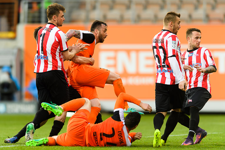 Przez większą część drugiej połowy oglądaliśmy ofiarne próby odrobienia dwubramkowej straty. Dopiero w 90. minucie Martin Nešpor silnym uderzeniem umieścił futbolówkę w siatce Sandomierskiego. Było 1:2 i wydawało się, że będzie to honorowe trafienie. Miedziowi nie rezygnowali jednak z marzeń o choćby punkcie w tym meczu i stało się. W 92. minucie na 2:2 w zamieszaniu podbramkowym doprowadził Lubomir Guldan. 31. seria spotkań w Lubinie to podział punktów.