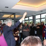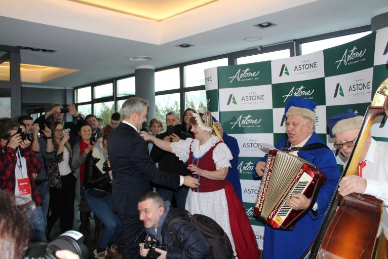 Zanim jeszcze Robert Biedroń dotarł na spotkanie z mieszkańcami w hotelowym korytarzu spotkała go miła niespodzianka. Przebrani w tradycyjne dolnośląskie stroje z 1848 roku artyści z Dolnośląskiego Zespołu Folklorystycznego „Warzęgowianie” wykonali autorski utwór na cześć lidera Wiosny. Sam zainteresowany nie krył zaskoczenia, szczerze dziękując za tak gorące przyjęcie.